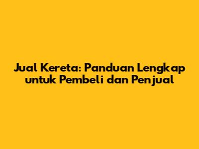 Jual Kereta: Panduan Lengkap Untuk Pembeli Dan Penjual