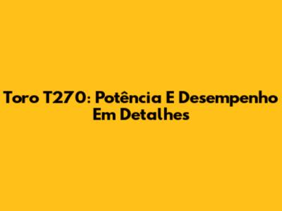 Toro T270: Potência E Desempenho Em Detalhes
